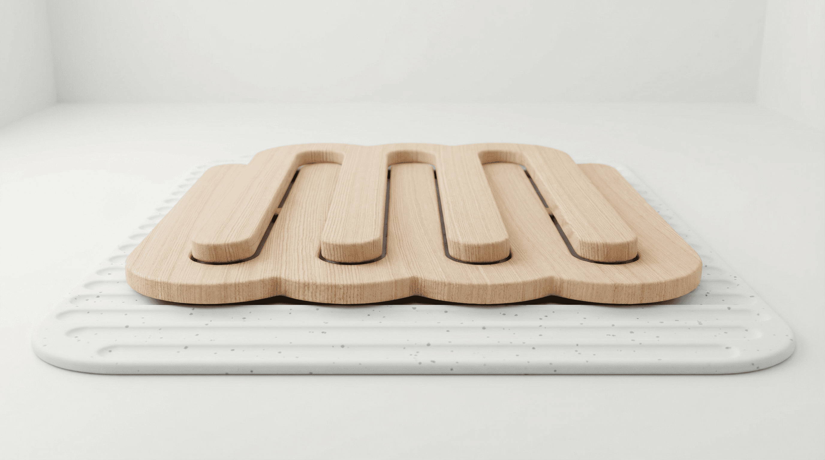 A bottle drying rack with intentional materials and organized functionality. Made from bamboo and silicone, this design introduces a renewable material to reduce overall plastic content while adding warmth and natural texture to the home environment.