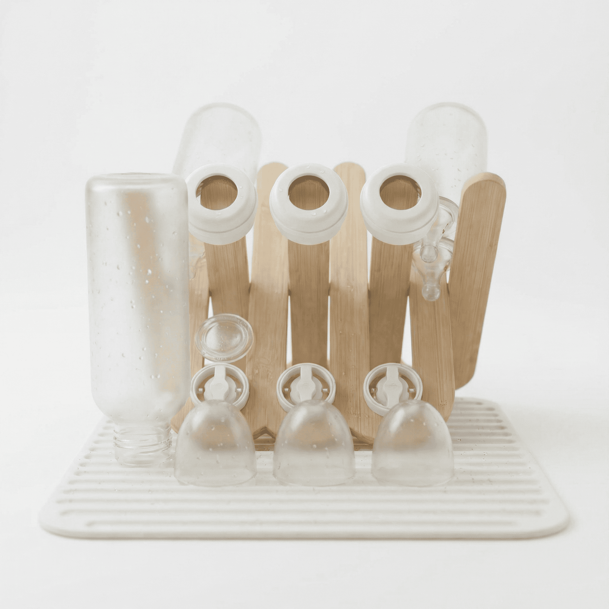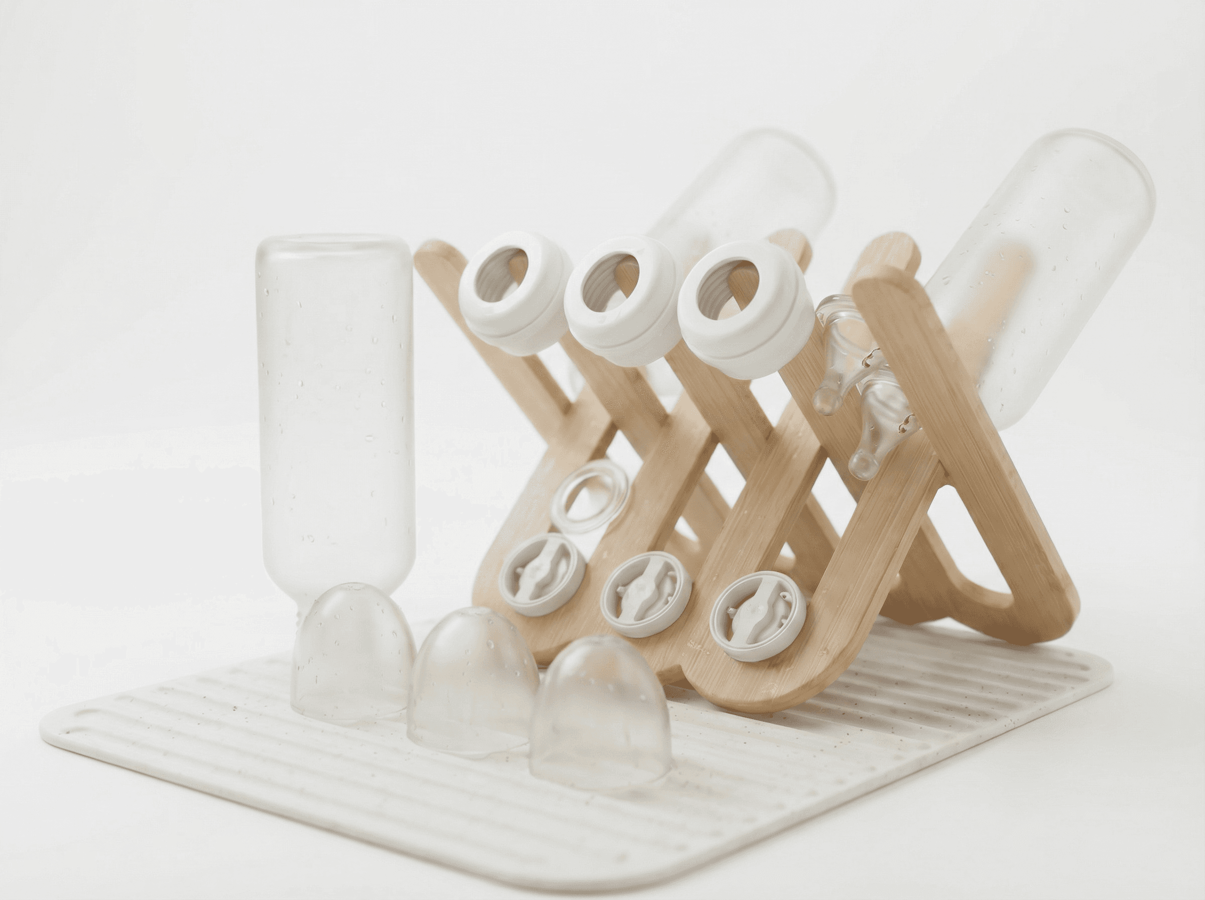 Designed to efficiently dry baby bottles and accessories while giving every component a defined, intentional place.